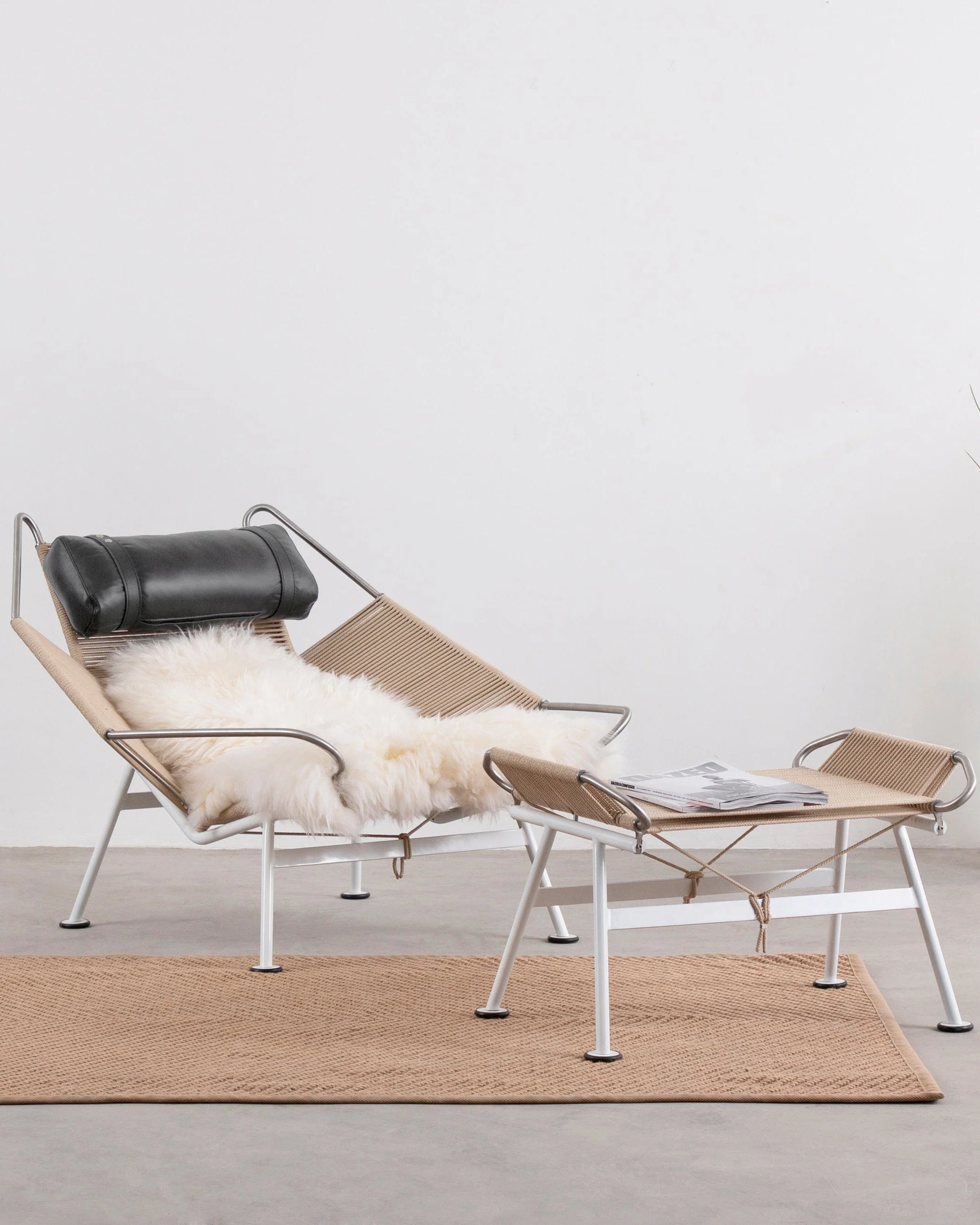 Named after the nautical term for a rope, this ottoman features a unique woven pattern that wraps around the frame, adding both visual intrigue and ergonomic support. Crafted from solid stainless steel, the stool's frame offers both durability and an industrial yet sophisticated aesthetic. The perfect accompaniment to the Halyard Chair, this studiously unique ottoman is versatile, utilizable on its own, and it infuses an additional layer of comfortability to the groundbreaking chair design.